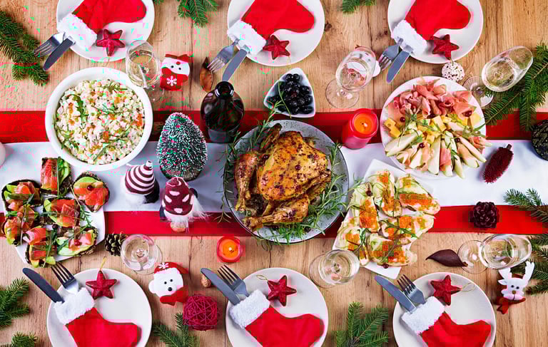 Christmas dinner with classic and international dishes